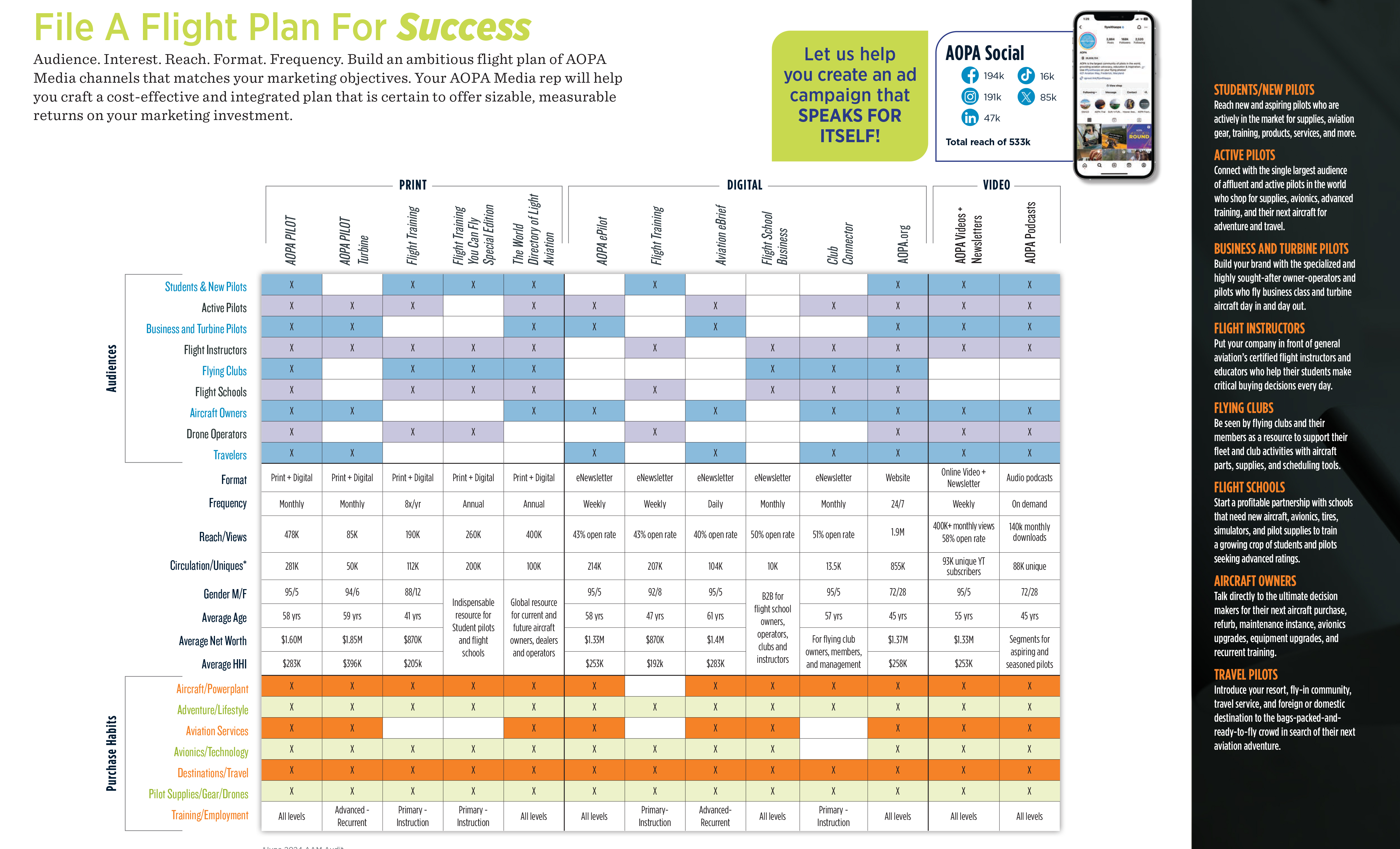 Embracing the largest aviation community in the world. AOPA represents a growing population of pilots of all ages, backgrounds, interests, and experience. Serving aircraft owners, renters, instructors, flying clubs, flight schools, and aviation businesses since 1939.