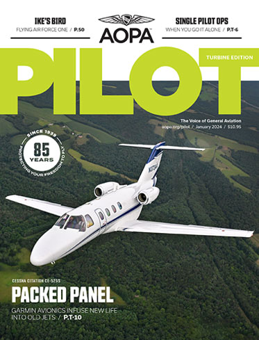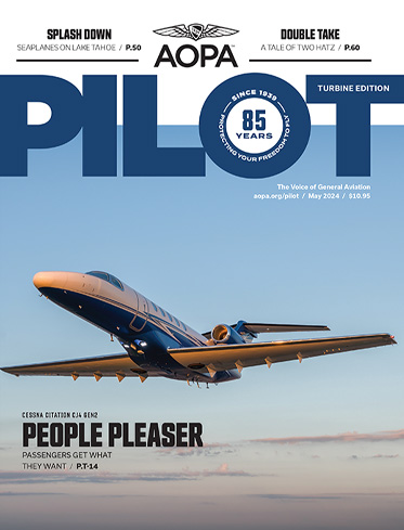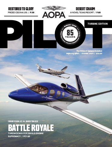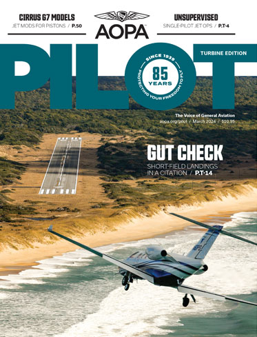 AOPA Pilot, Turbine Edition includes all the stories in AOPA Pilot, plus 16 additional pages of stories specifically for pilots and owners of turbine-powered aircraft. If you fly a turbine aircraft, or will transition into one in the near future, call Member Services at 800-USA-AOPA for more information. See answers to frequently asked questions here. Not a member yet? Join AOPA for a year of AOPA Pilot Turbine Edition and all the other great benefits of membership.